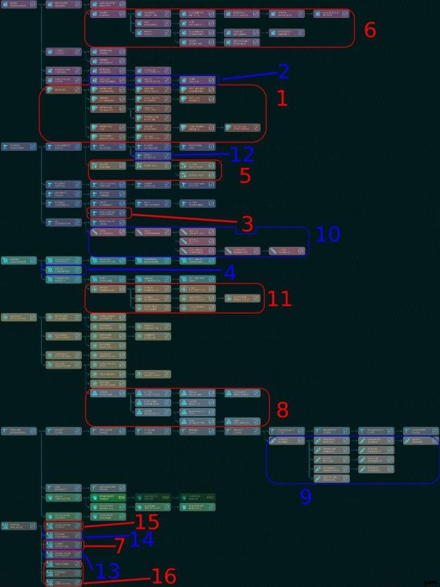 - ほとんどの人はおそらく、自分が見逃している 1 つの特定の研究に興味があるので、次の画像を参照してください。番号は、このガイドの章に対応しています。