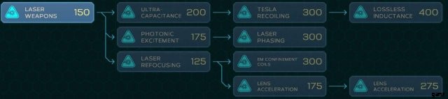 - ミサイルと同様に、レーザーを使用する敵は「ビーム兵器の一部」を落とします。そのうちの 3 つは研究の可能性をもたらします。