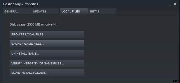 最初にゲームに移動し、城の物語を右クリックします。プロパティと書かれている部分に移動します。クリックしてください。