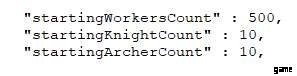 次に、開始ワーカー、開始ナイト、開始アーチャーが表示されている場所に移動し、これらの数字を好きなように変更しますが、使用しているコンピューターの種類によっては、フレームを多く与えるほどフレームが遅くなることを覚えておいてください.ファイルを終了する前に保存してください。