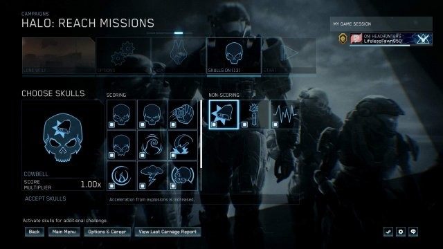 個人的にはすべてのスカルを有効にすることをお勧めします。私は LASO (Legendary All Skulls On) のキャンペーンを完了していませんし、Halo スカルに夢中になったこともありません。私がそれをすることができるかどうか私が言うとき、私を信じてください。問題を引き起こす可能性のあるスカルは「キャッチ」のみです。