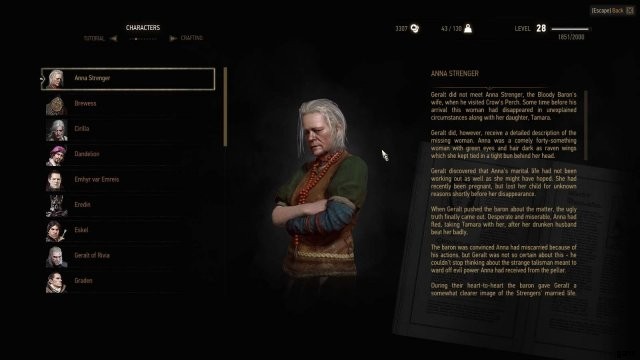 ゲームのクエスト ログとキャラクター エントリはどちらも吟遊詩人 Dandelion によって書かれており、ストーリーで何が起こっているかを追跡するのに非常に役立ちます。ストーリーの変化に合わせて更新されるので、定期的にチェックして最新情報を確認してください。