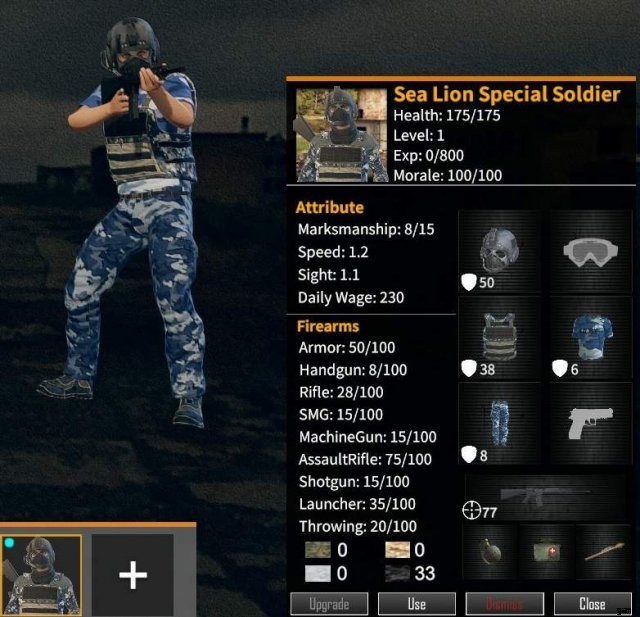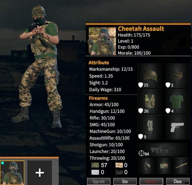 ユニットはより優れた CQB 擲弾兵に成長し、彼を夜間のライフルマンにすることはより良いコスト投資です。これを支援するために、ヘルメットとチェスト アーマーの両方のアップグレードも夜間迷彩にする必要があります。