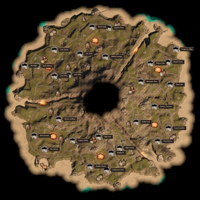 このガイドには、火山のすべてのラベリング マップが含まれています。