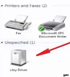 すべてを正しく行うと、接続音が聞こえ、「デバイスとプリンター」に vJoy ドライバーが表示されます (そこに行くには、コントロール パネル => ハードウェアとサウンド => デバイスとプリンターに移動します)。