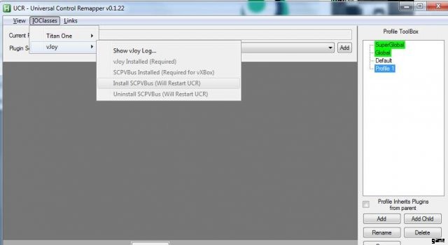 IOClasses => vJoy => SCPVBus をインストールします。