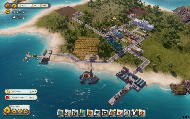 いくつかの長屋、居酒屋、診療所、礼拝堂を作っています。また、食料生産用の建物 (トウモロコシ、バナナ、パイナップル、魚) をたくさん作ります。予算を 2 スタックの現金に減らして、観光用の建物よりも魅力的でないようにします。また、ポートとチームスターのオフィスの予算もほとんど必要ないため、削減します。