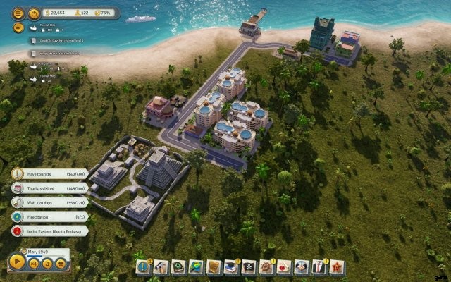 観光の収益性は、移動時間に非常に敏感です。これは、トロピコでは、観光客が建物を訪れたいときに、訪問を決めた時点でスロットを事前予約するためです。これは、観光客がマップを移動している間、スロットがロックされていることを意味します。その間、そのスロットはあなたにお金をもたらしません。そのため、旅行距離が非常に短くなるように、ホテルと観光スポットの密集した塊を作成する必要があります。バスを使って移動時間を短縮することもできます。