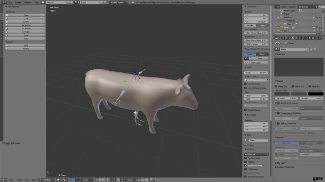 次に、「作成」メニューから平面を追加し、モデルに結合します。結合後、平面に透明なテクスチャを割り当てます。