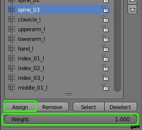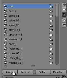 まず、平面のみを選択します。 Vertex Group メニューで、ルート以外のボーンを選択し、ウェイトを割り当てます。重みが 1 に設定されていることを確認してください。