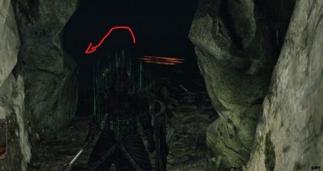 洞窟エリアに到達するまで、前方への道を進みます。たき火のすぐそばにいるようなものです。