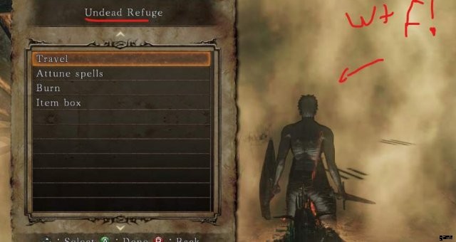 アンデッドリファージの篝火に向かいます。ハンツマンの死体とも呼ばれます。