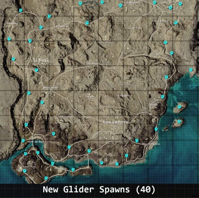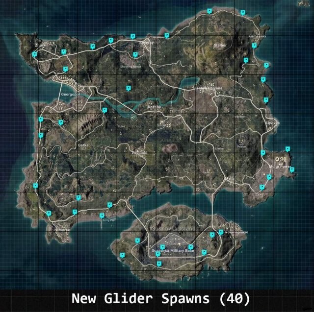 Mirmar と Erangel マップの新しいグライダーのスポーン場所。