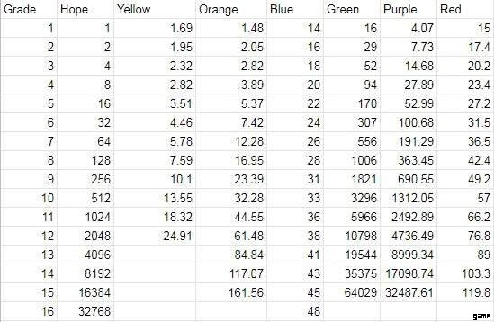 参考までに架空の希望石(黒)を入れておきます。コストが 2 倍になるたびに、パワーが 2 倍になります。