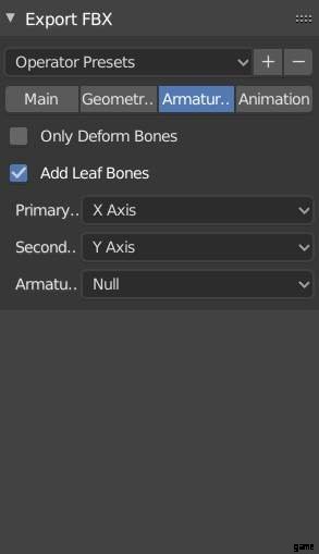 アーマチュア タブは非常に重要です。アーマチュアはメッシュと同じように動作しません。アーマチュアのロールはゲーム内のアニメーションを反映し、軸も同じではありません。 X 軸が主軸で、Y 軸が副軸です。