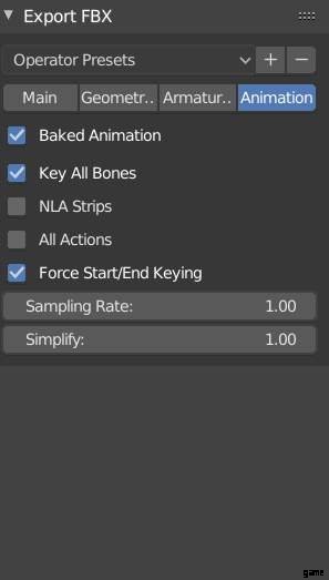 アニメーション タブも同様に重要です。 「Bake Animation」は、すべてのアクションを 1 つの大きなアニメーションに焼き付けます。名前は、これに依存します: