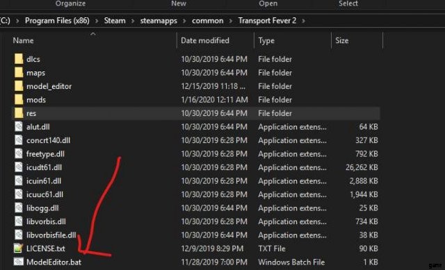 よし、まずは。モデル エディタは .exe ではなく、steamapps/common/Transport Fever 2 の下の .bat ファイルです。