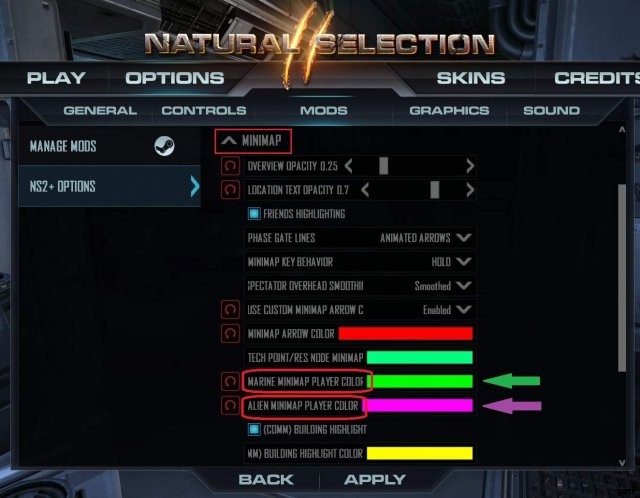 次に、「Marine minimap player color」と「Alien minimap player color」を見つけます。