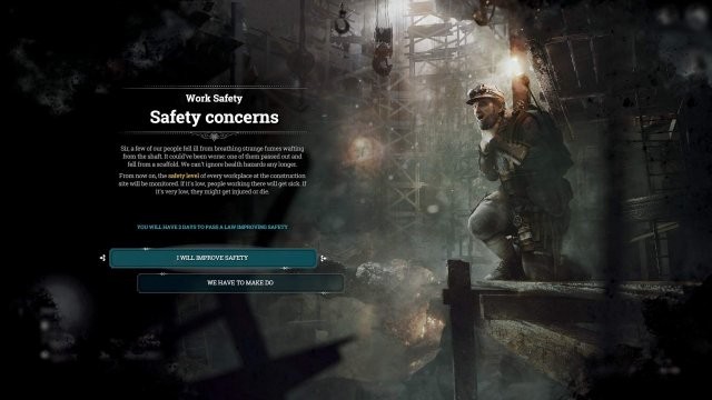 安全確認イベントは労働法のロックを解除するイベントであり、爆発イベントや先制攻撃イベントではありません。 First Strike イベントの後、Safety Check をアンロックする方法がまだ見つかりません。工場の労働安全性を低下させるという私の仮定に基づいて、First Strike 後にすでに進行しているゲームで安全性チェックをトリガーする可能性があると思います。