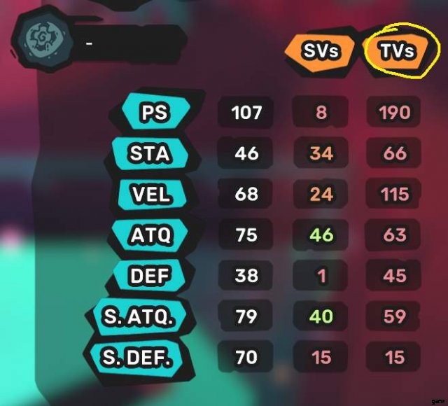 TV (トレーニング値)。基本的に、敵のテムテムを倒すと、レベルの経験値が得られ、テレビで経験値が得られます。