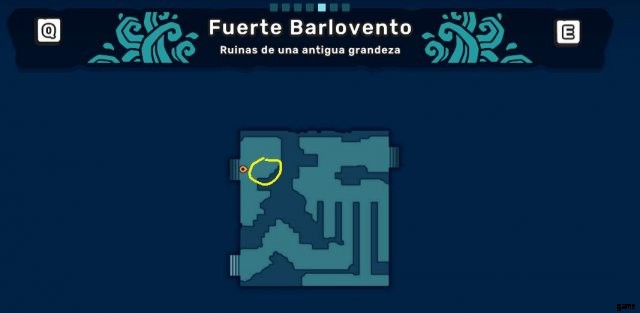 砦に入ったら、上の階段を上ると、マップのマークされたエリアに着きます。