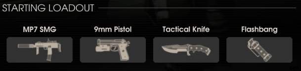 Mp7、9mm、タクティカル ナイフ、フラッシュバングで構成されています。全体的に、どの試合でも非常に強力なスタートです。