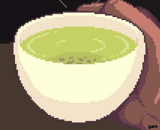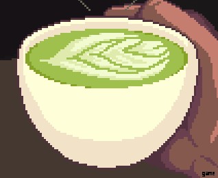 抹茶ラテ – 甘くて香ばしく、心にほのかな苦味があります (温かくなく、冷たくなく、甘くなく、苦くありません)。
