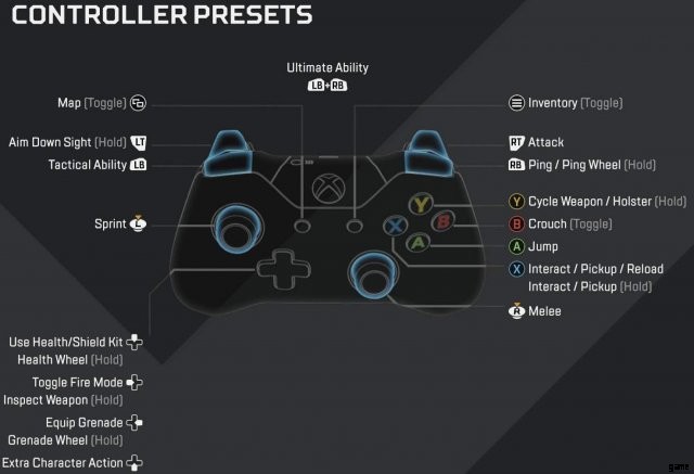 Apex Legends の PS4 バージョンのすべてのコントロール オプション。