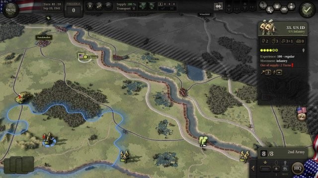 It gets worse from there:a unit on its third turn out of supply becomes fully suppressed, it doesn’t receive full MPs for the turn (meaning it cannot cross rivers) and it doesn’t even capture territory when it moves. Additionally, on all following turns the unit will lose steps and specialists as stragglers. I would like to avoid this happening to my units, so let’s see what can be done.