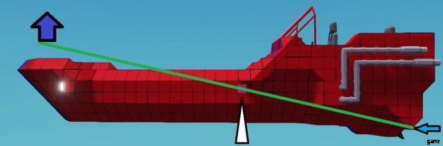 これはボートを横から見たものです。右側に一対の支柱があり、質量の中心がピンク色で表示されています (既にエンジンを追加しました)。これだけで十分です。画像に MS ペイントを適用させてください。
