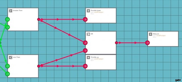 The only problem with this is that it does so little bit too eagerly, this is mostly a very mild annoyance type of problem, as it revs the engine up and down to keep within the target. The only way to deal with this particular problem is to make another logic section that handles the fine adjustments of the throttle lever itself. Basically this is what you need to have:
