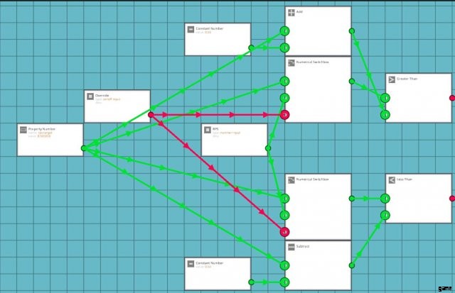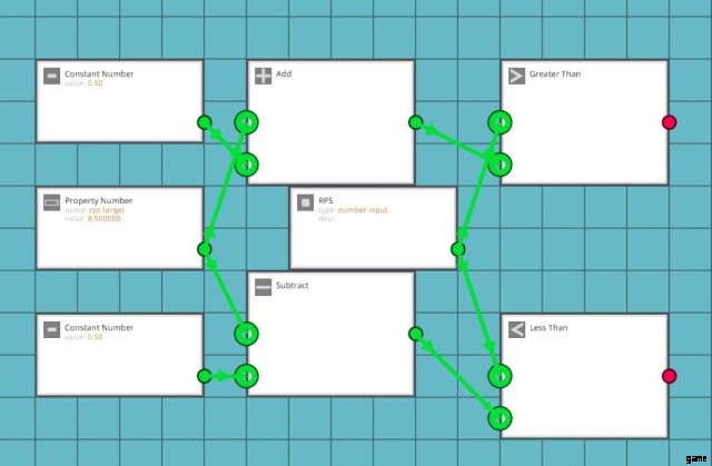 I will try to explain the logic behind these in the first paragraph after every picture, if you’re already decent with logic, you can skip this part. Firstly, we’re using 2 constant numbers only so it’s easier to read. The incoming number sets the desired target, the addition and substraction creates a range of +0.5 and -0.5 from that value, this compares the RPS coming from the engine to see whether or not it is larger or smaller than the desired value.