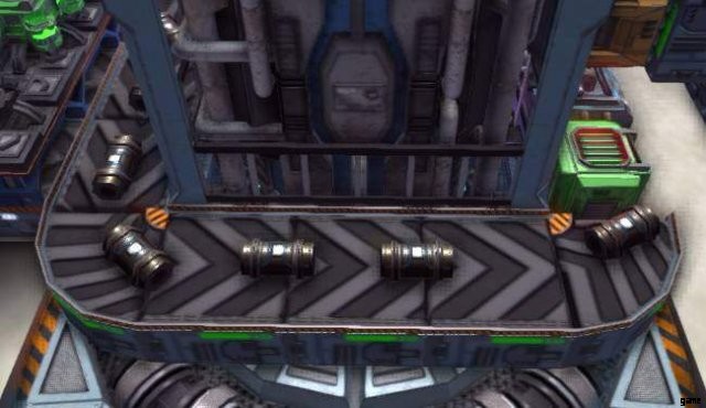 空のキャニスターは左側から大容量貯蔵システムを出て、製油所リアクター バットの反対側に回ります。