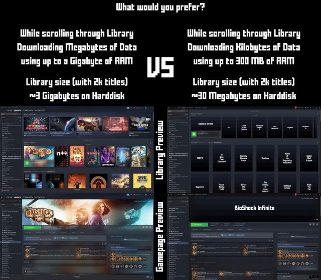 このガイドでは、Steam のさまざまな設定/カスタマイズについて説明します。 2019 年 10 月、Valve は Steam クライアントのライブラリ セクションを作り直しました。この新しいライブラリは、Steam サーバーからハードドライブ/RAM に大量のデータを転送するため、Steam ライブラリを閲覧するだけで、コンピュータのパフォーマンスとインターネット接続に悪影響を及ぼす可能性があります。