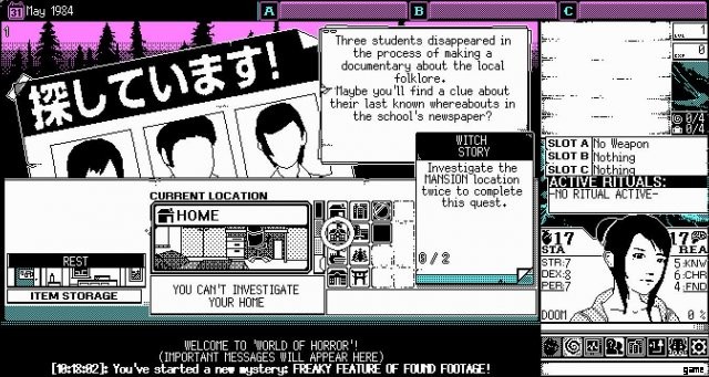 World of Horror – スターター ガイド (ゲームモード、キャラクター UI、ホーム、戦闘)