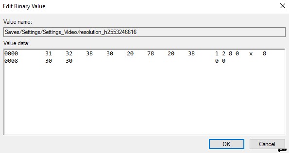 ゲーム設定はレジストリに保存されるため、そこから解像度を設定できます。