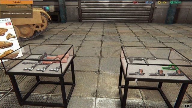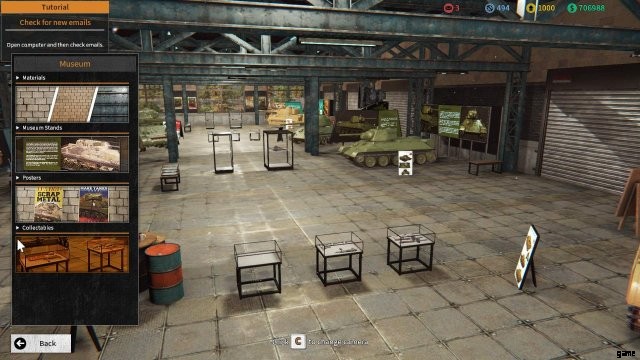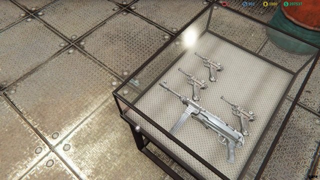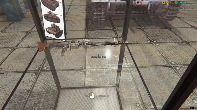 博物館のカスタマイズ メニューでは、アイコンはいくつかのバイザー キャップ、MP40、およびおそらくメダルの箱と思われる赤いボックスを含むケースを示しています。