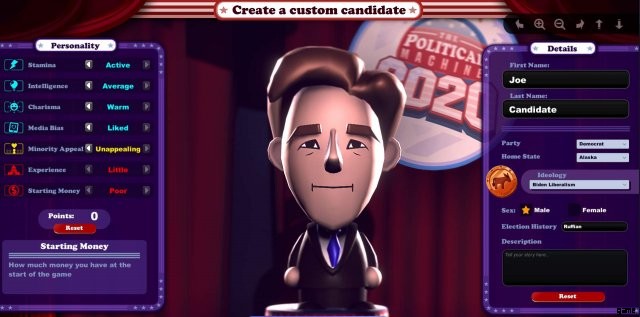 このゲームでは、ジョー・バイデンのイデオロギーを選択します。