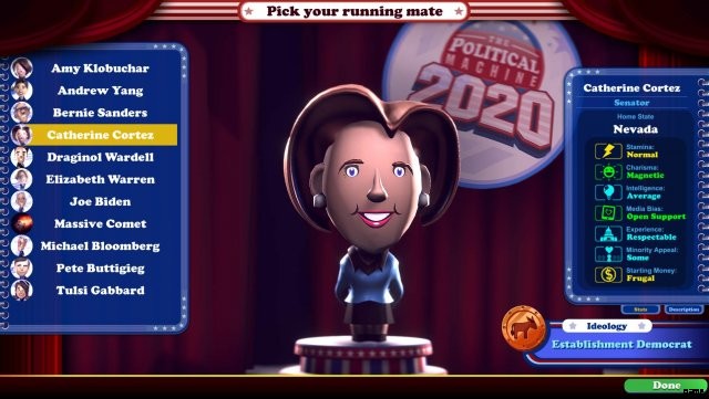 The Political Machine 2020 では、AI がランニング メイトの面倒を見てくれます。彼らは周りを回り、あなたと共通の問題についてキャンペーンを行います。また、誰を選ぶかについて少し注意する必要があることも意味します。