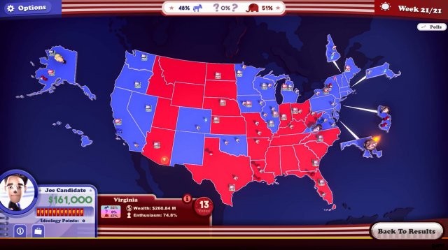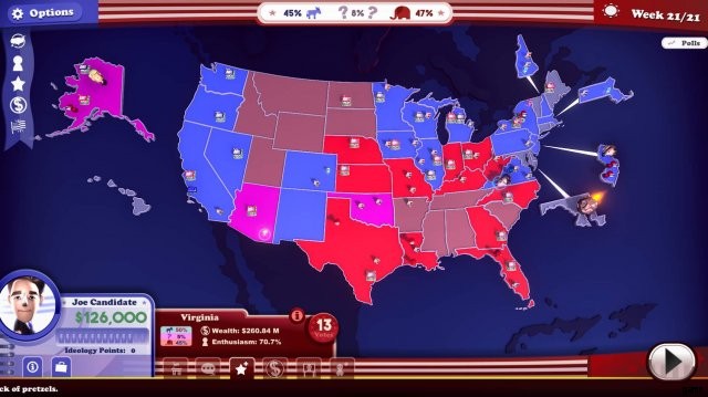 キャンペーンの作成には 21 週間 (ターン) かかります。これは、あなたが行うすべての動きが重要であることを意味します。最初は、候補者はほぼ同点になる傾向があります。