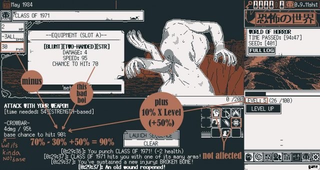 あなたの命中率 ={武器ステータス} + {10% にあなたのレベルを掛けた} – {敵のパワーレベル}.