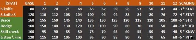 ほとんどのrevelantアクションのスケーリング。ナイフは 80/120 のアクション時間を持つため、例として示されています。