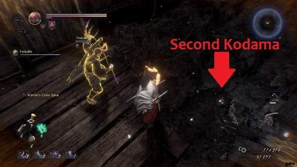- 2 番目のコダマは、最初のダーク レルムの下のプラットフォームにあります。最初にエレベーターに乗り、途中まで走って闇の世界へ。端に到達するまで木の板を一周すると、下に児玉が見えます。