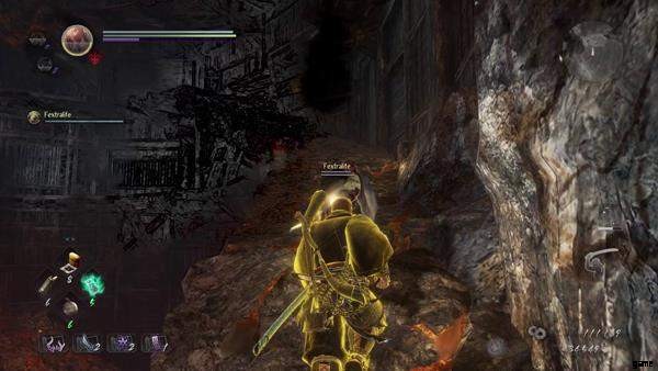 - 城の東門の東口から城の2階に向かいます。異常な兵士に遭遇する大規模な貯蔵室の後、ぬりかべの壁の後ろに温泉があります
