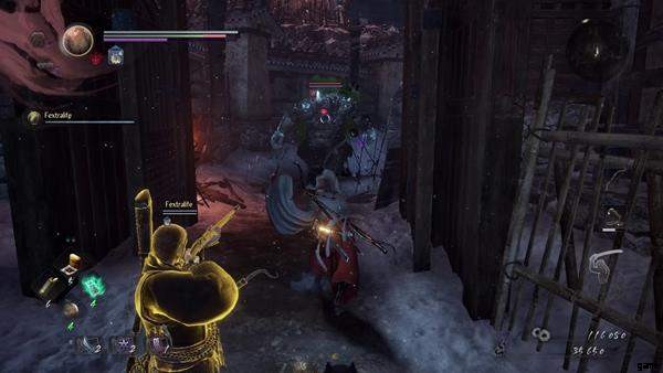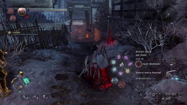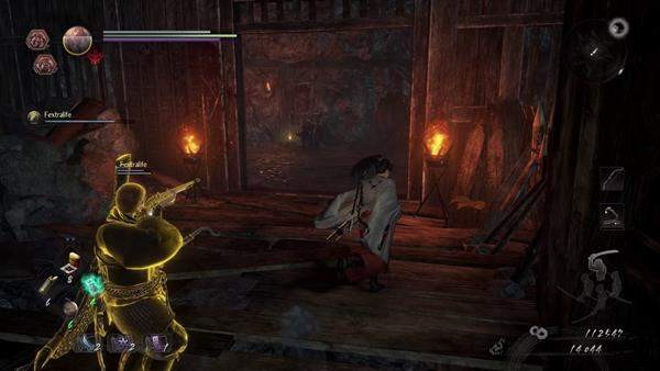 Go into the door that’s on the west side and you’ll see another Dweller that’s feeding and a looting soldier which seems to be the source of the dark realm. Kill the Dweller first with your ranged weapons or projectiles before fighting the spear-wielding soldier. Once it reaches about 50-60% left of its health, it will reveal its true form which is actually a new Yokai, a Rokurokubi that is able to disguise itself as a human.