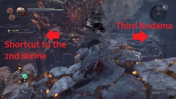 Head to the bottom and on the left side, by the wooden platforms, you’ll find the second Sudama. Here you’ll also find the third Kodama shrine.