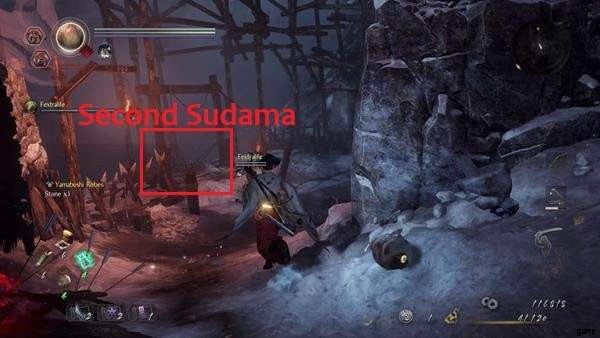 - 2 番目のスダマは、スノークロプスに遭遇する斜面の下部にあります。そのエリアに通じる道は、城の敷地内にある第二児玉神社の近くにあります