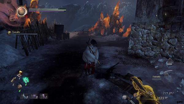 From there, go right, you’ll see a large chest at the end of the corridor and a soldier trying to open it. After killing the soldier and opening the chest, go back to the door you just opened and head inside the nearby room where you can loot an item and memory next to a painting of a crane. After searching the room, continue forward and search the floor. On the right side, there’s a large storage room where a soldier is guarding it, while on the left side, you’ll find a small chest and a small armory that also has a small chest and is being guarded by another soldier. Check the armory first that’s on the left side then go down the stairs to the front entrance of the castle where you’ll enter the Dark Realm.