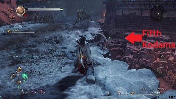 At the entrance of the castle, you’ll encounter another Aberrant Soldier and a Snowclops inside. After killing them, go east, outside the castle where you’ll find another Dweller that’s standing by the edge next to some bamboo sticks. At the right side corner, you’ll find the fifth Kodama that’s on a small platform below.