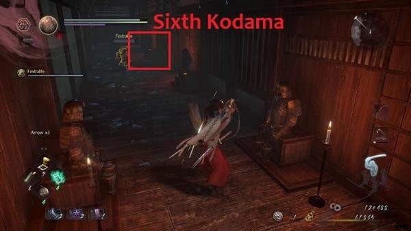 Once you enter the castle from the east gate. You’ll come across a long corridor where there are armor displayed. Destroy the fourth display that’s at the end to find the sixth Kodama that’s hiding behind it.